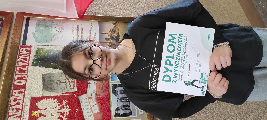 Miło nam poinformować, że uczennica klasy VIII – Lena Ceglarz otrzymała Dyplom z Wyróżnieniem.