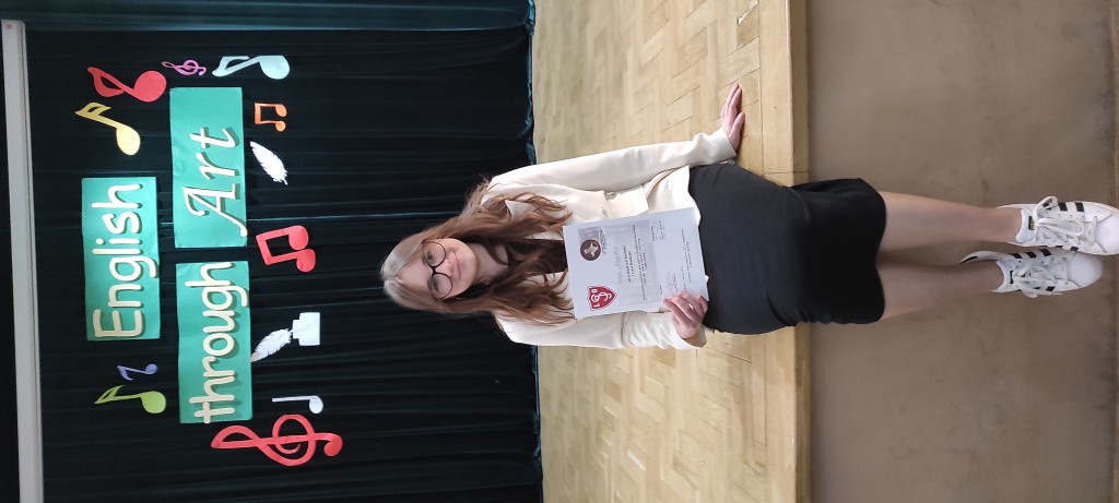 5 marca uczennica klasy VIII – Maja Krzysztoń wzięła udział w eliminacjach do finału XIII edycji Powiatowego Konkursu Recytatorsko – Wokalnego “ENGLISH THOUGH ART” organizowanego przez I Liceum Ogólnokształcące im. J. Słowackiego w Częstochowie.