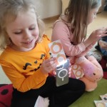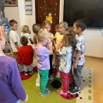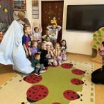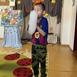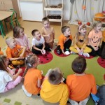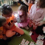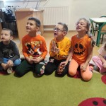 PAŹDZIERNIK – bezpieczeństwo w domu, lęk przed ciemnością. Uczniowie zerówki  wysłuchała bajki „Jak Bąbelek przestał się bać ciemności”,  a uczniowie klasy I o tym jak Czarnouszek przestał się bać ciemności.