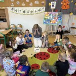 LISTOPAD –rozwiązywanie konfliktów rówieśniczych (kłótnia, agresja). Uczniowie zerówki wysłuchali bajki o Kocicy Złośnicy, a uczniowie klasy I bajki o Lwie Drapusiu.