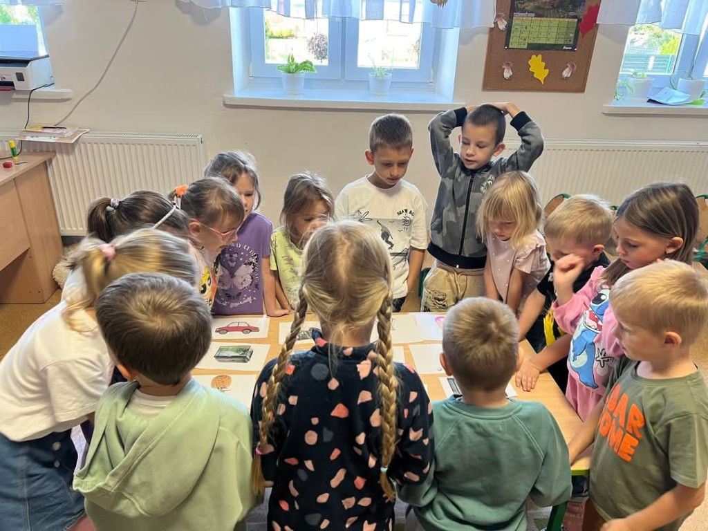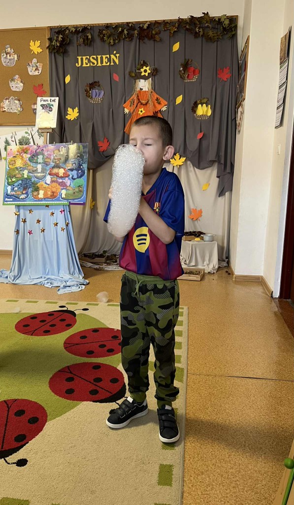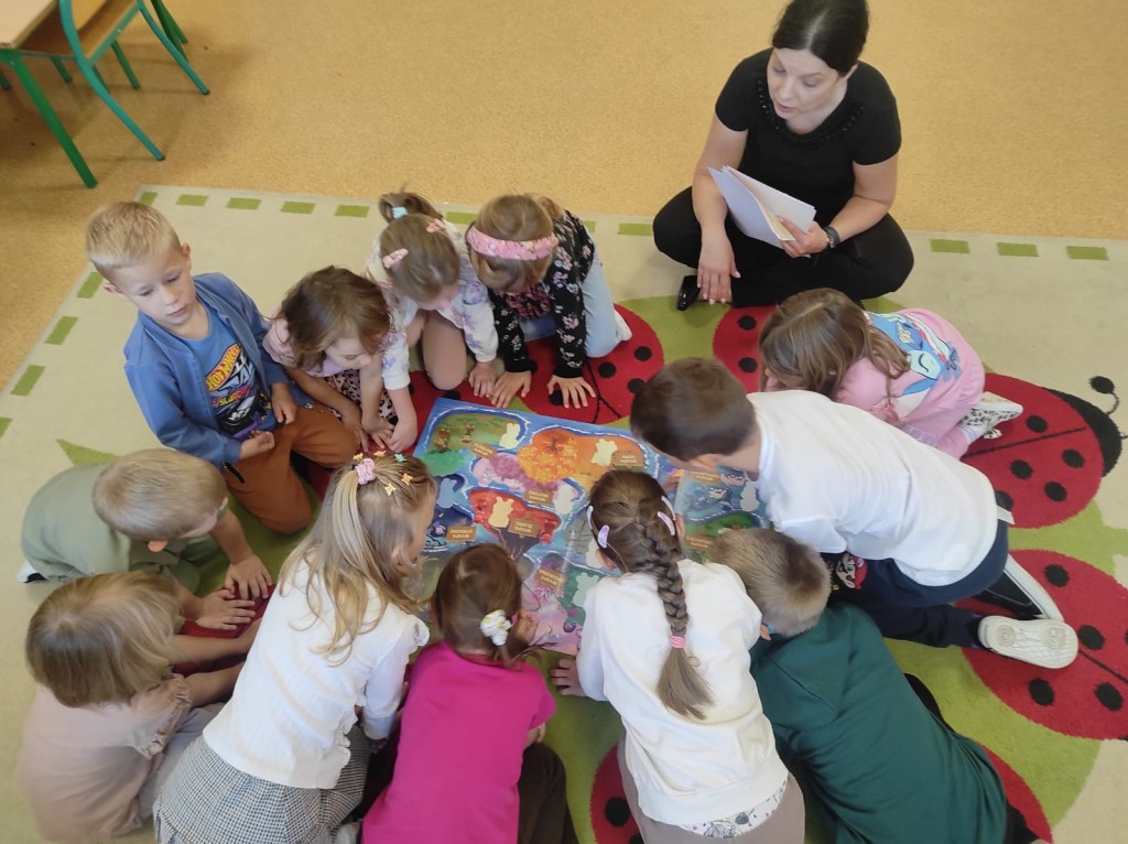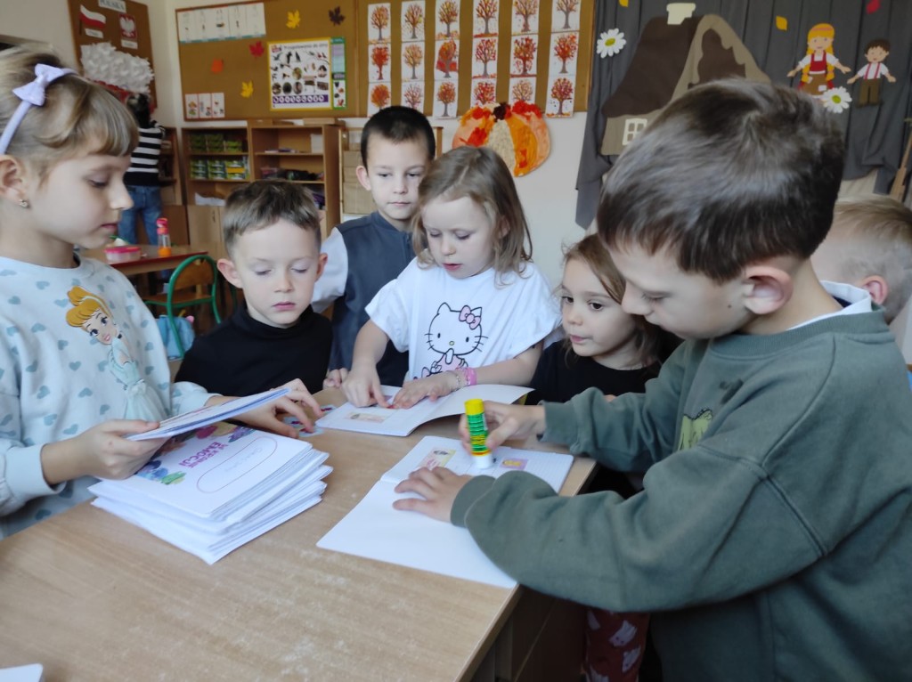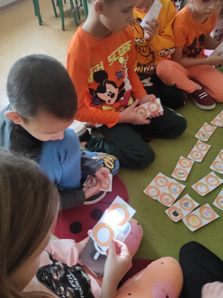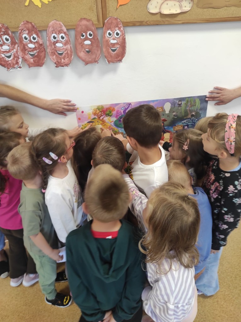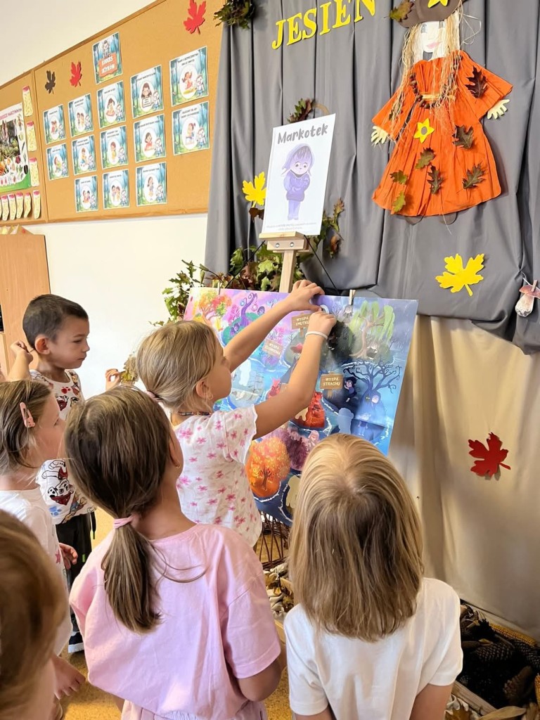 Z przyjemnością uczniowie realizowali zadania projektowe. Rozpoczęli od spaceru po okolicy. Obserwowali ptactwo nad stawem, zabytkowy kościół św. Idziego i szlakiem turystycznym skierowali się do pobliskiego lasu szukając zmian zachodzących w przyrodzie jesienią. Z przedmiotów natury stworzyli przyrodnicze mandale. Podczas realizacji zajęć na świeżym powietrzu uczniowie czytali lekturę poza budynkiem szkolnym. Kolejnym zrealizowanym zadaniem było wyjście w ciekawe miejsce. Ten czas uczniowie spędzili na wycieczce do Gospodarstwa Edukacyjnego „Owocowa Przystań”. Brali udział w warsztatach edukacyjnych „Jesienny sad”.