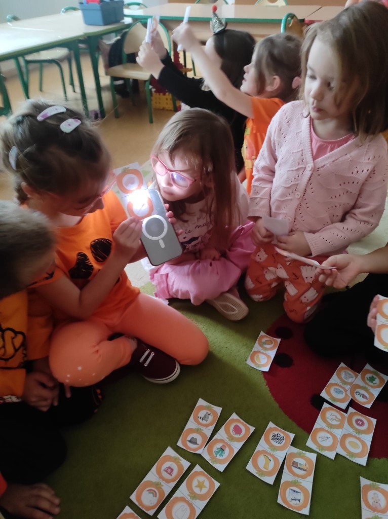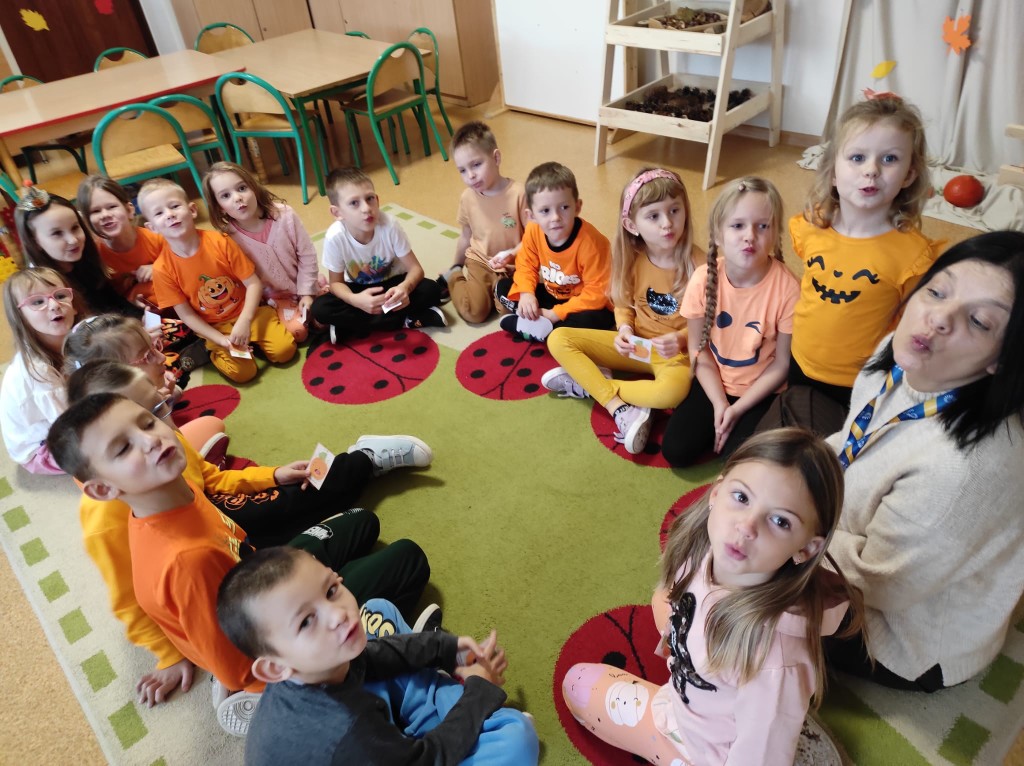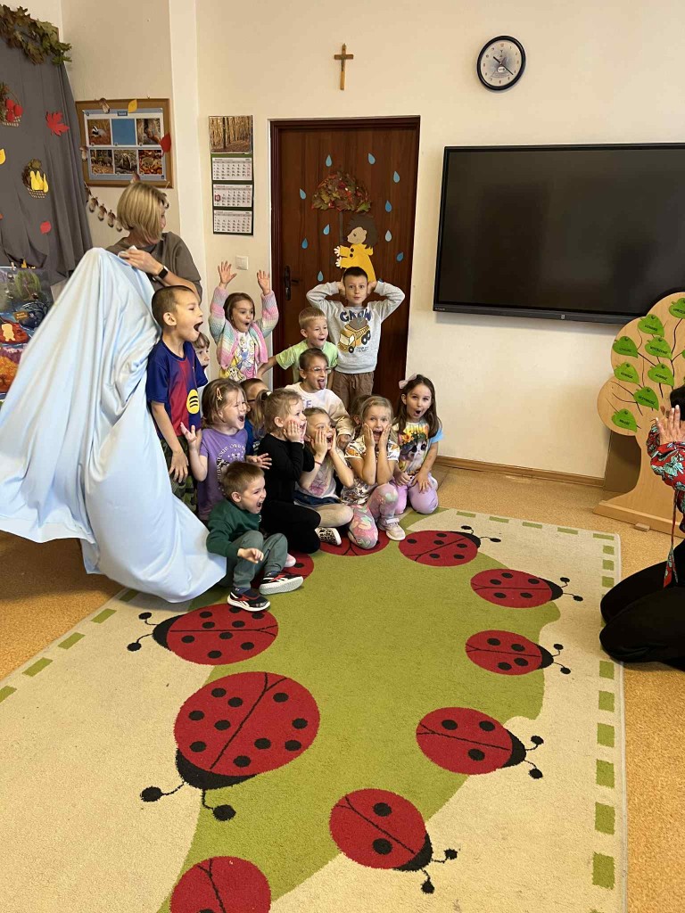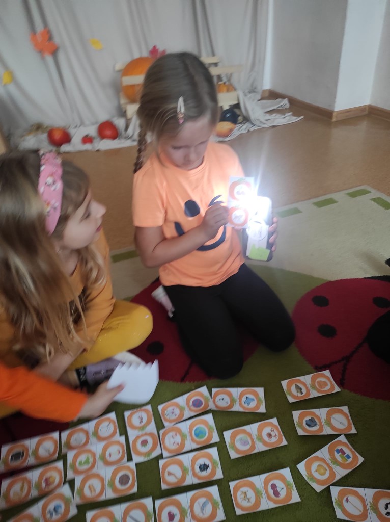 PAŹDZIERNIK – bezpieczeństwo w domu, lęk przed ciemnością. Uczniowie zerówki  wysłuchała bajki „Jak Bąbelek przestał się bać ciemności”,  a uczniowie klasy I o tym jak Czarnouszek przestał się bać ciemności.